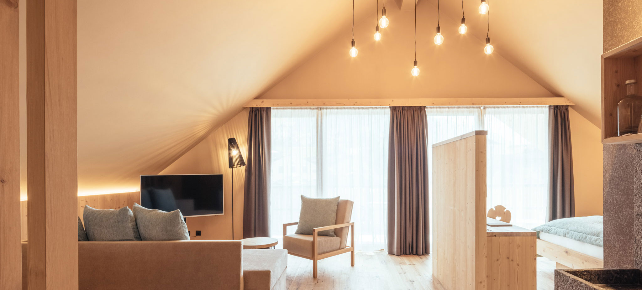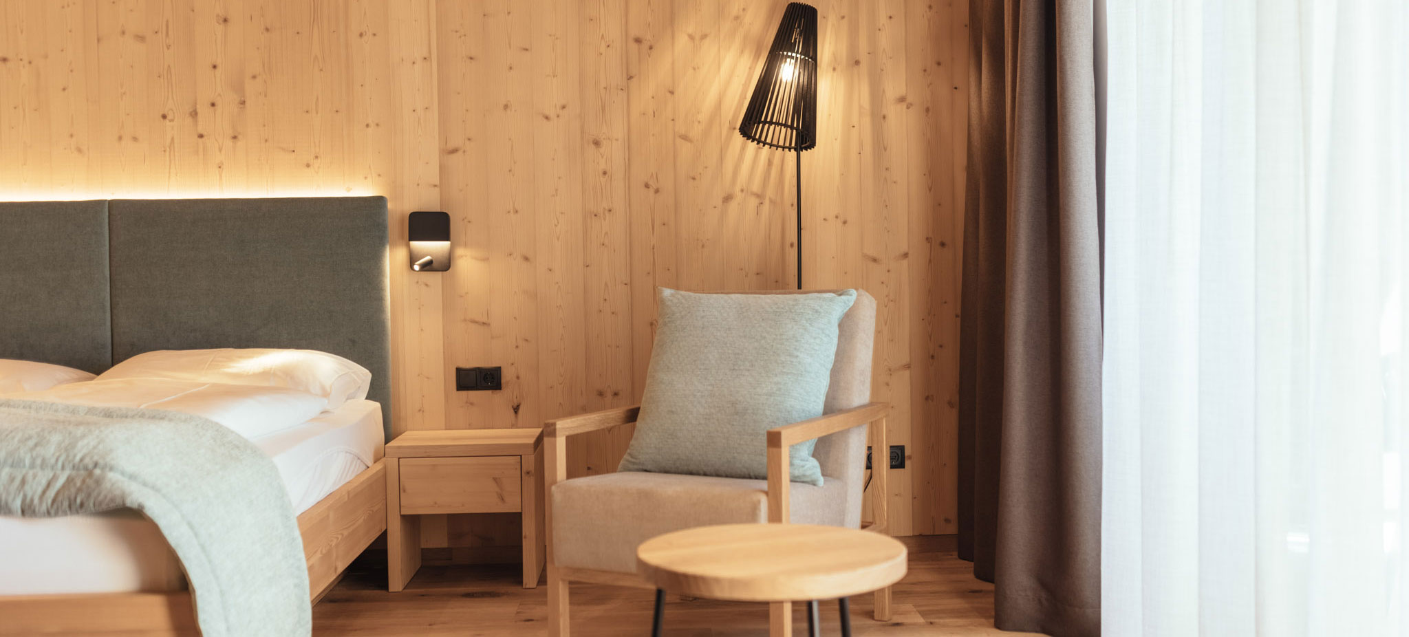 Wie alles in unserem Hotel im Passeiertal, so vereinen auch die nur 31 Zimmer das Früher mit dem Heute: Traditionelle Elemente – Charakterstücke des Hauses – harmonieren in den Zimmern des Tirolerhofs in St. Leonhard mit natürlichen Materialien wie Holz und Stein. Große Fenster lassen viel Licht herein und lenken den Blick nach draußen. Dezente Textilien schaffen eine heitere Atmosphäre, gemütliche Sitzecken geben dem Raum Wohlfühlcharme. Und im Hintergrund klingt sanft das Plätschern des Baches.